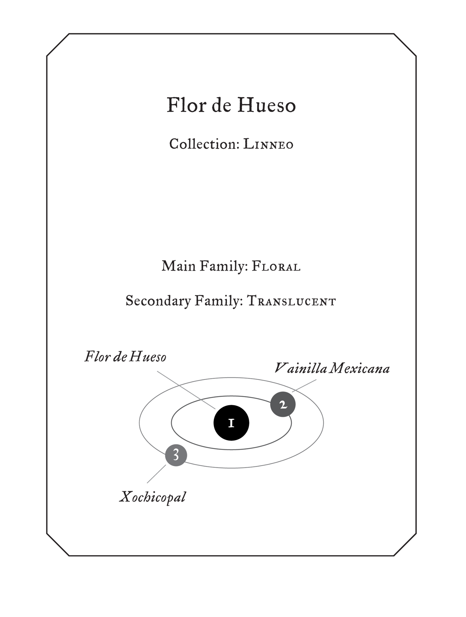 The aromatic profile of Flor de Hueso is composed by three ingredients that are deeply rooted in Mexican ethnobotany: tuberose, vanilla, and copal.
